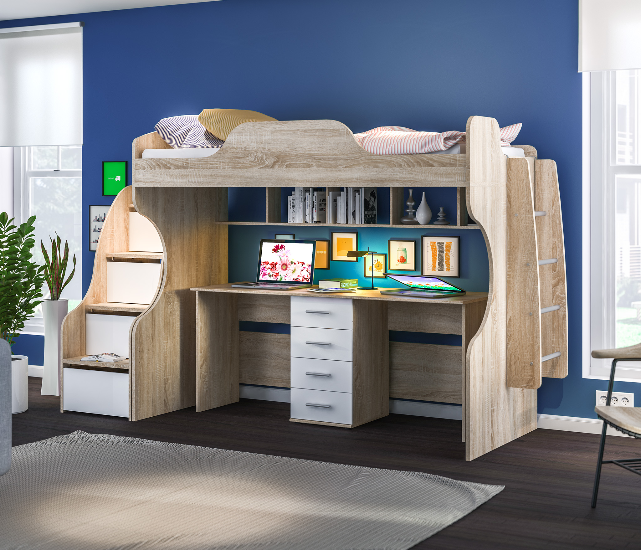 Размеры кровати (ШхВхГ) 206х103х166 см