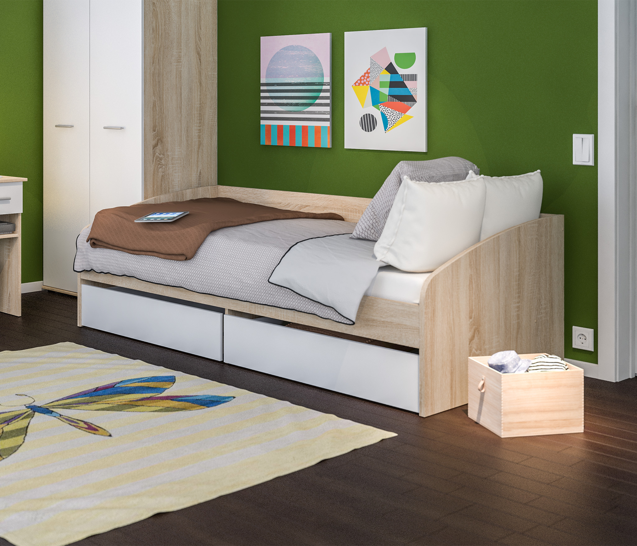 Размеры кровати (ШхВхГ) 207х103х166 см