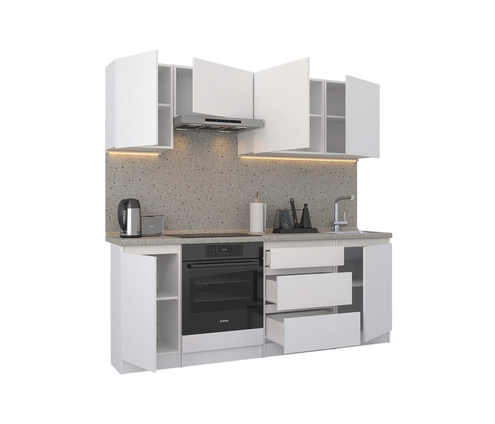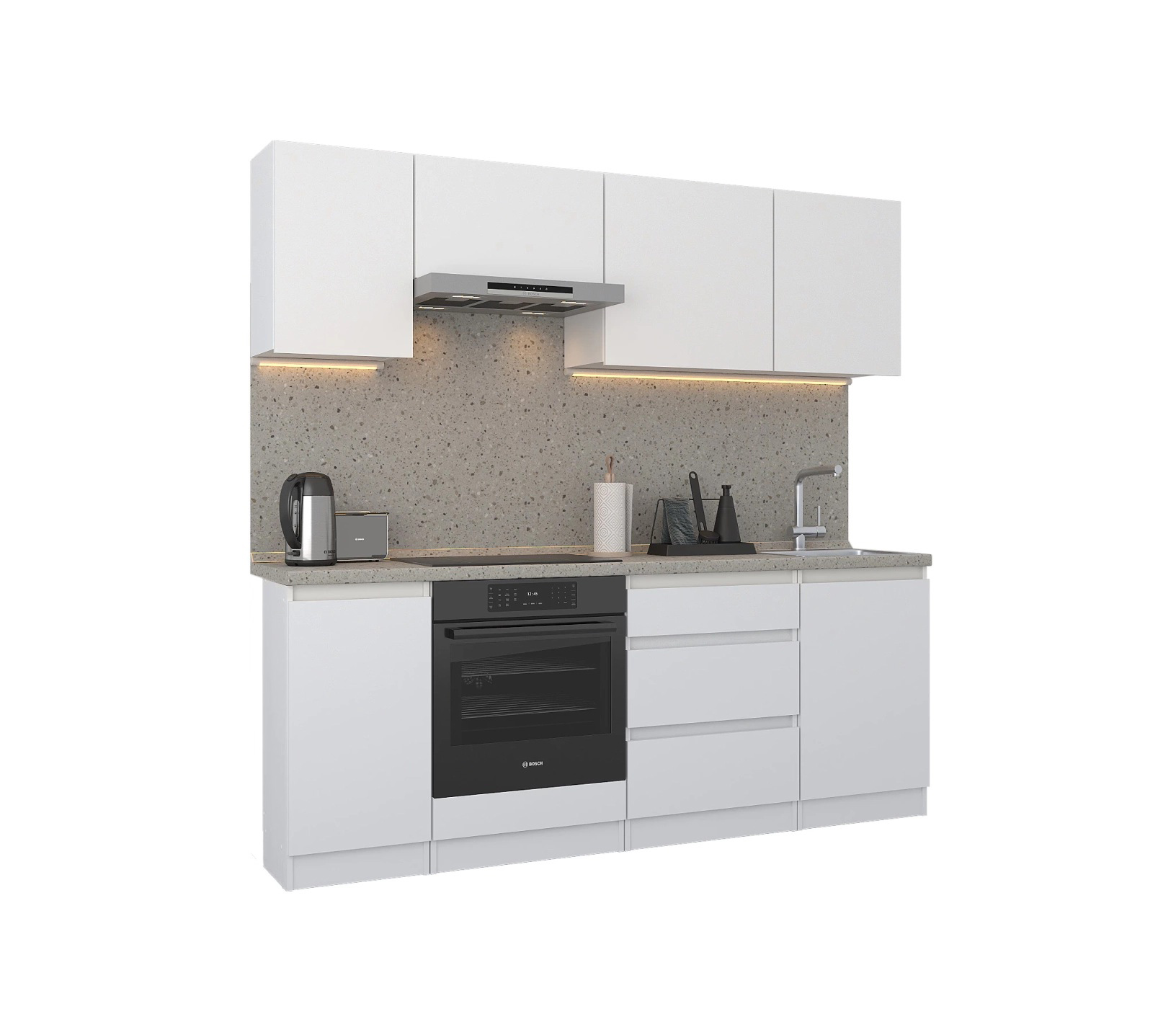 Кухонный гарнитур Леон прямой 210 см, белый (Белый)