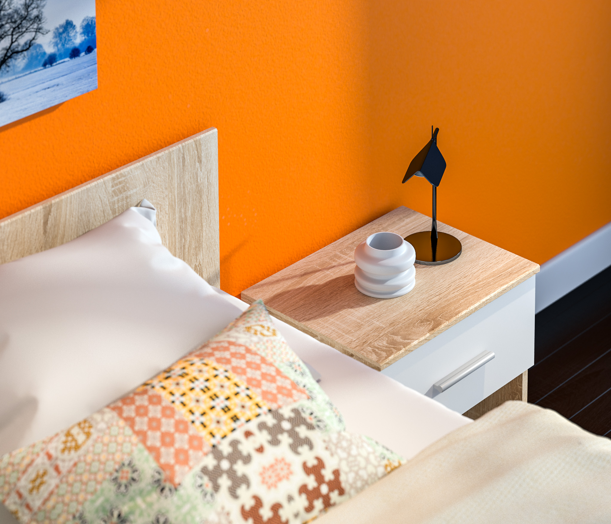 Мамбо СБ-2683.Н Тумба прикроватная Дуб Сонома/Белый