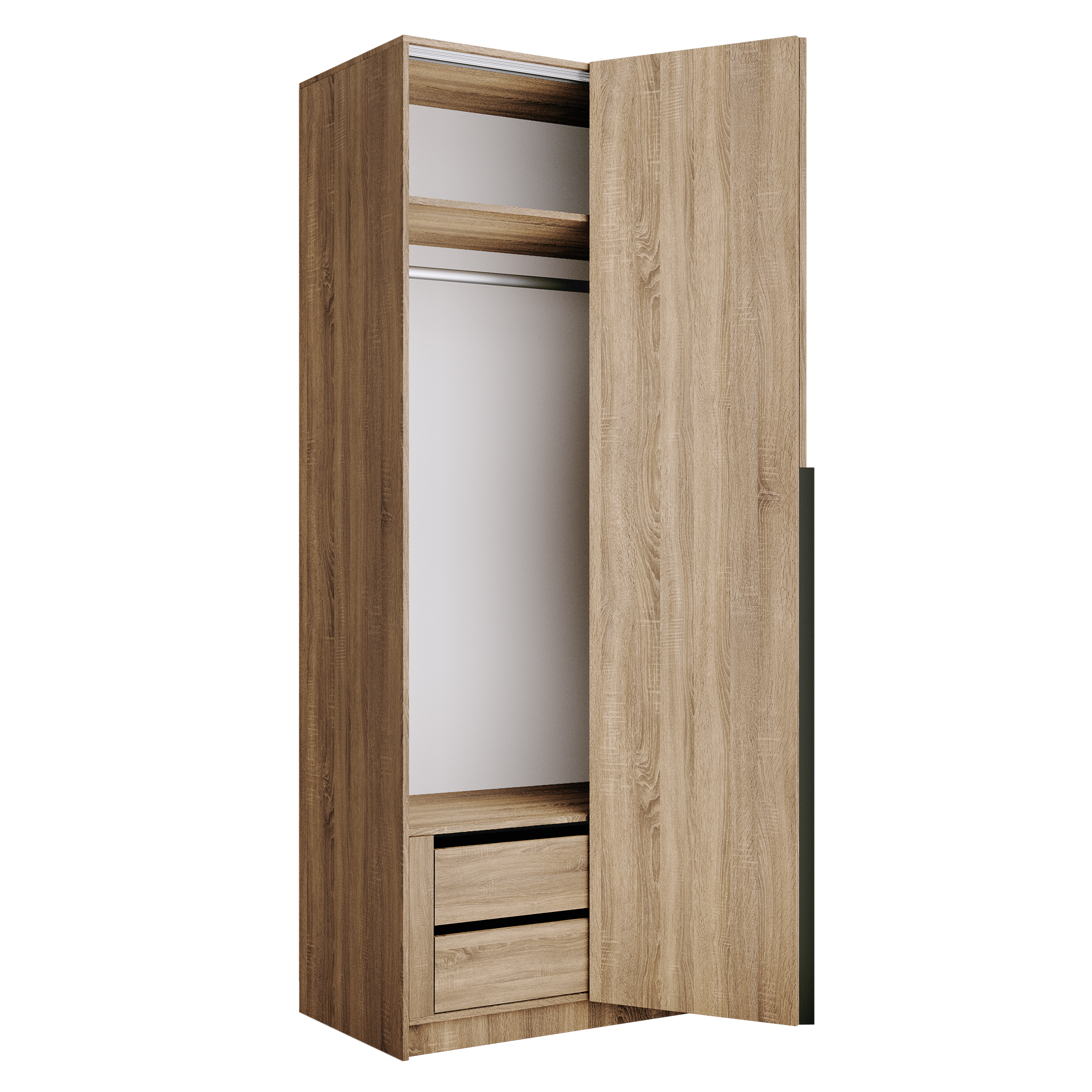 Локер — вместительный шкаф для одежды со складной системой открывания, отличающийся своим удобством в эксплуатации и легкой установкой. Идеально подойдет не только к вашему спальному гарнитуру, прихожей и детской, но и будет гармонично сочетаться со всеми элементами мебели. Не займет много места, но позволит вместить большое количество вещей. Внутреннее наполнение шкафа позволяет вместить не только верхнюю одежду и обувь, но и аксессуары. А удобное разделение секций поможет грамотно разместить все вещи в шкафу. Благодаря надежным полкодержателям - штифтам, полки шкафа могут выдерживать до 15 кг, штанга выдерживает до 60 кг. Вы сможете убрать сезонные вещи, постельное белье на верхние полки. Шкаф оснащен долговечной, ударостойкой кромкой ПВХ, которая защищает его торцы от сколов и повреждений, что обеспечит вам комфортное и долгое использование гардероба. Складная система дверей WingLine L экономит внешнее пространство за счет складывания дверей и обеспечивает их надежную фиксацию в открытом виде. Данный механизм обеспечивает плавный ход и исключает образование слепых зон. Система рассчитана на 40 000 циклов «открывание-закрывание». Для эффективной организации пространства внутри корпуса, двери оснащены минимальным выступом. Шкаф оснащен удобной минималистичной ручкой, изготовленной из алюминия.В производстве используется безопасное ЛДСП международного класса Е1, что способствует безопасному использованию на протяжении всего срока эксплуатации. Поэтому вы можете использовать его в детской комнате, и ваш ребенок будет в безопасности. *Изображения товара могут отличаться по цвету и фактуре от фактического внешнего вида.