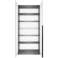 Благодаря надежным полкодержателям - штифтам, полки шкафа могут выдерживать до 15 кг. Шкаф оснащен долговечной, ударостойкой кромкой ПВХ, которая защищает его торцы от сколов и повреждений.
