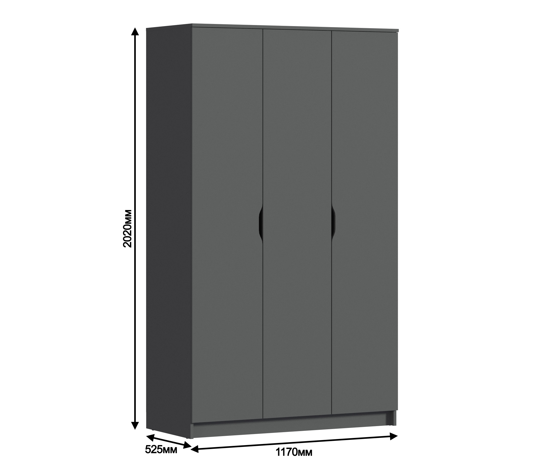 - Трехдверный шкаф, размером: Ш 1770 х В 2020 х Г 530 мм.