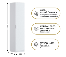 Шкаф однодверный Макс 500 мм, вариант №1 (ЛДСП/МДФ) (Белый)
