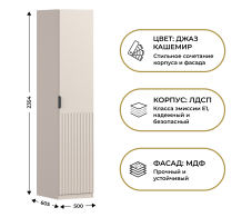Шкаф однодверный Макс 500 мм, вариант №1 (ЛДСП/МДФ) (Кашемир)