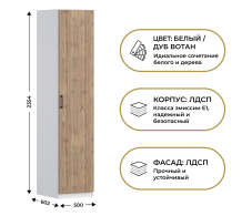 Отзывы о Столплит Шкаф однодверный Макс 500 мм, вариант №1 (ЛДСП, дуб вотан) Дуб вотан/Белый