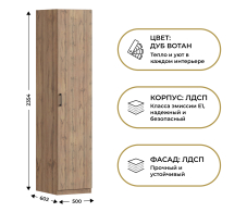 Шкаф однодверный Макс 500 мм, вариант №1 (ЛДСП, дуб вотан) (Дуб Вотан)