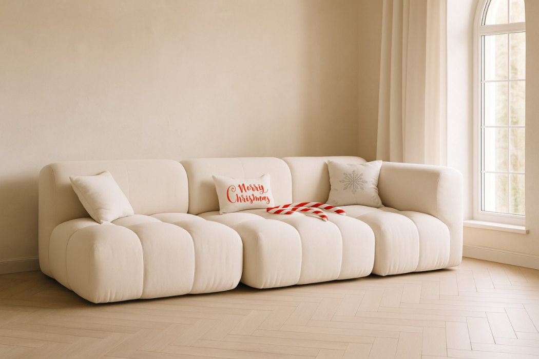 Подушки с наполнителем из холлофайбера идут в комплекте — их съёмные чехлы на молниях легко снимаются для чистки или замены; в подарок при заказе вы получаете ещё 2 подушки.