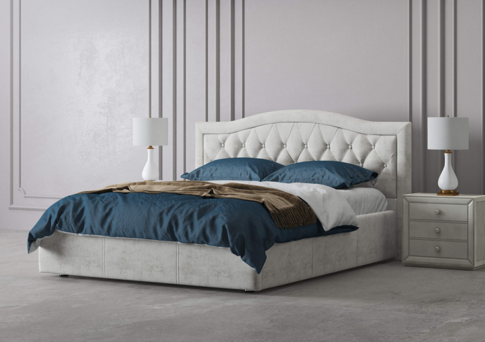 Откройте для себя мир безупречного комфорта с кроватью «Грация» — моделью, в которой гармонично сочетаются изысканный дизайн, премиальные материалы и продуманная функциональность. Кровать привлекает внимание элегантным силуэтом и благородной фактурой. Обивка из мягкого велюра создаёт атмосферу уюта и роскоши: ткань приятна на ощупь, отличается глубоким цветом и лёгким благородным блеском. Изящные ножки подчёркивают дизайн модели, добавляя ей лёгкости и утончённости — они не только украшают кровать, но и обеспечивают надёжную опору.