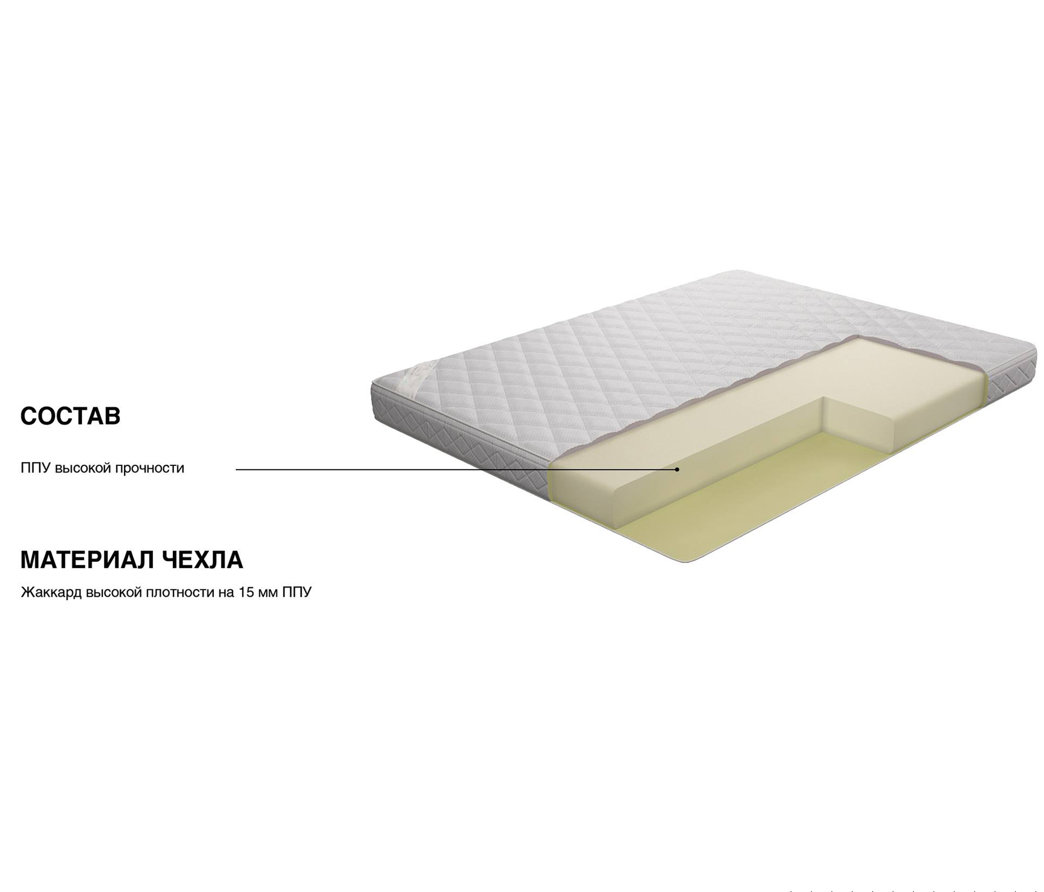 Классический вариант беспружинного матраса, в основе которого монолитный блок высокоэластичной пены. Данный материал будет поддерживать оптимальную, для комфортного сна, температуру поверхности. При этом он очень легок, что делает его отличным вариантом для использовании на вторых этажах детский кроватей. Пена из которой изготовлен матрас полностью гипоалергенна. Высота матраса делает его идеальным для кроватей с не высоким бортом, в т.ч. детских и молодежных кроватей. Обращаем ваше внимание, что матрас и наматрасник отвечают за правильное положение позвоночника во время сна, но за шейный отдел позвоночника отвечает подушка, а не матрас, поэтому крайне важно не только правильно подобрать матрас, но и подушку, чтобы сон стал максимально комфортным и полезным. Рекомендовано использование вместе с защитным чехлом Aquastop.