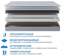 Многослойный матрас, подходящий для пар с разным весом. Многообразие слоев и разность их жесткости обеспечит комфортный сон почти любому. Вязкоэластиный ППУ создает ощущения близкие к материалам с памятью формы, но при этом не увеличивает стоимости самого матраса. Пена с эффектом микромассажа обеспечит полное расслабление после тяжелого дня. В этом матрасе использованы латексированные плиты кокосного волокна и сизаля, имеющие в совокупности толщину 20 мм и 30 мм (разные стороны) обеспечат правильную поддержку позвоночнику и при этом защитят матрас от продавливания. Этот матрас- гарантия хорошего и здорового сна, что в свою очередь пойдет на пользу суставам и опорноднодвигательному аппарату, а в случае уже имеющихся проблем, он поможет замедлить их развитие. Обращаем ваше внимание на то, что любой матрас отвечает за правильность положения во время сна нижнего и среднего отделов позвоночника, а за правильность положения шейного отдела отвечает правильно подобранная ортопедическая подушка. Рекомендуем использование с защитным чехлом AquaStop.