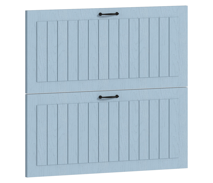 Две панели для ящиков шкафа. Они изготовлены из прочной и экологически чистой прессованной древесины. Панели устойчивы к воздействию воды и пара. Каждая панель дополнена двумя ручками в классическом стиле.