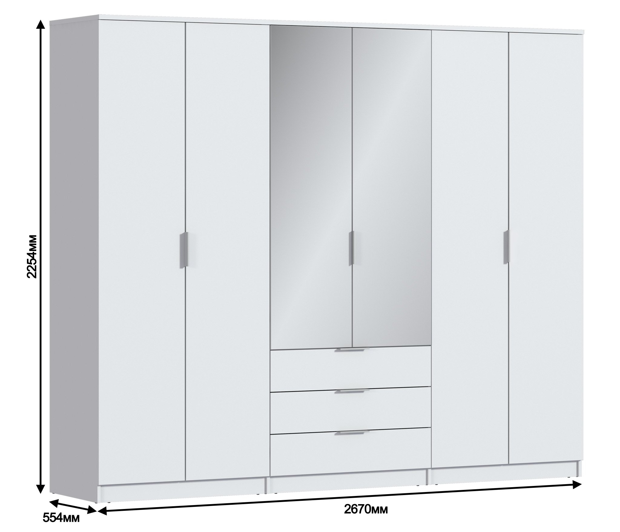 Шкаф 6-ти дверный Николь СБ-2593/1 Белый (Белый)