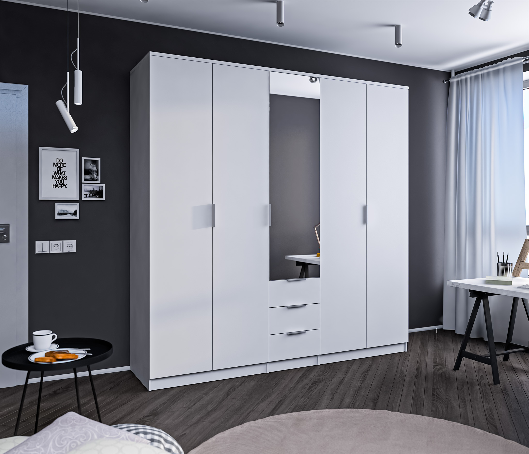Шкаф покупала в комнату для ребенка, поместились все вещи, еще и место осталось. Цвет шикарный, не утяжеляет пространство