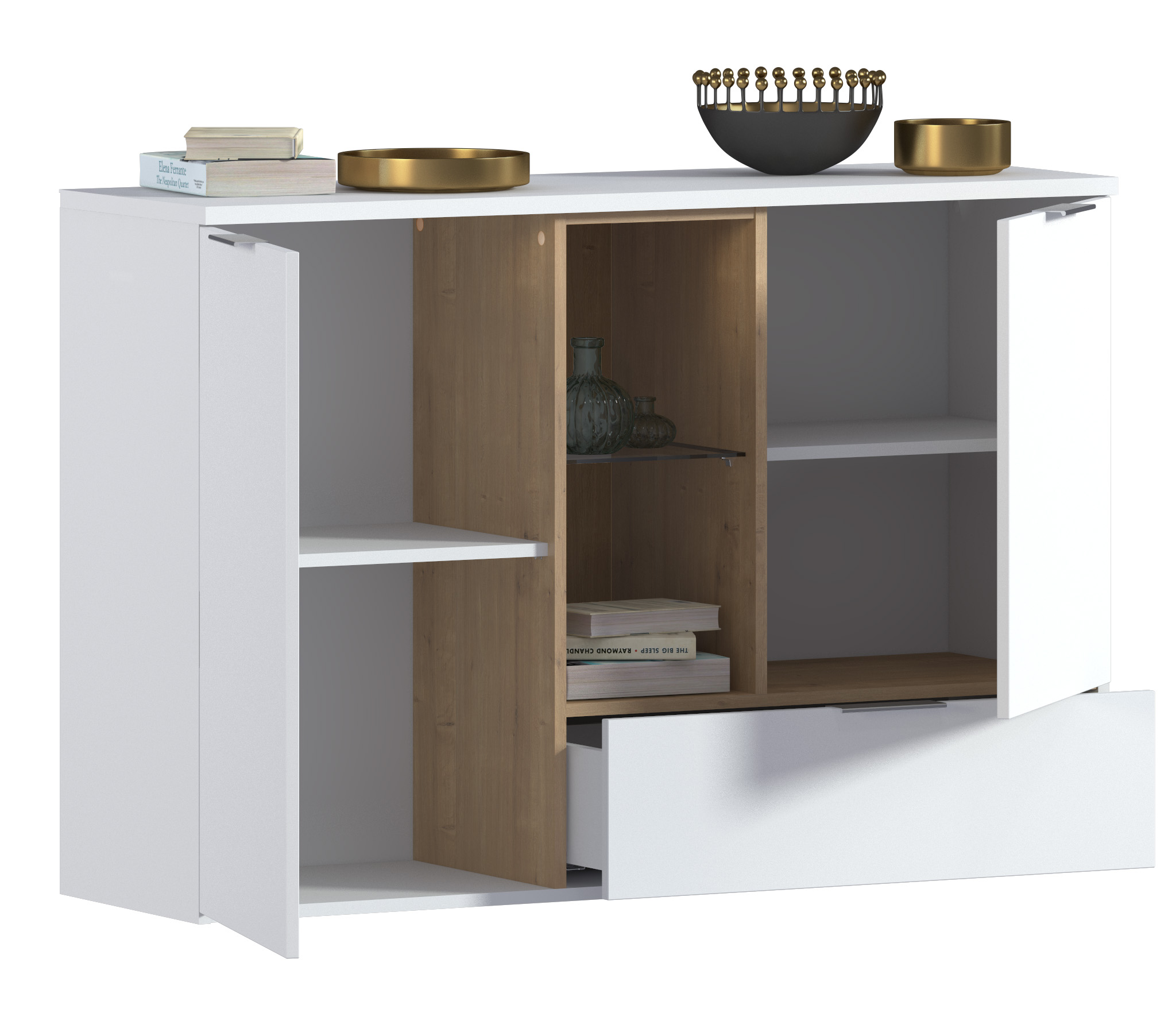 Комод Мальта СБ-3264 Белый,Дуб Гамильтон/МДФ Белый (Белый,Дуб Гамильтон)
