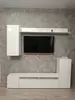 В состав стенки входит: тумба под телевизор с открытыми полками для видео, аудио аппаратуры и отделениями с непрозрачными дверцами, открытая полка для демонстрации коллекции декоративной посуды или памятных сувениров, закрытые модули для книг, посуды.
