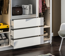 Брали в детскую. С доставкой и сборкой вышел 21тр. Шкаф простой, но за эту стоимость я и не рассчитывала на что то большее. Очень вместительный. Без повреждений. Не знаю сколько прослужат нажимные механизмы, но если что, то поставим ручки туда-не проблема. Сначала подумала, что нужно меньше было брать, но потом поняла, что все ок. Слева шкаф чисто для верхней одежды и коробок с обувью. Справа вешалка под наряды. А середина-для всего остального. Доче только 1,5г, поэтому количество одежды увеличится в разы как пойдет в детский сад.