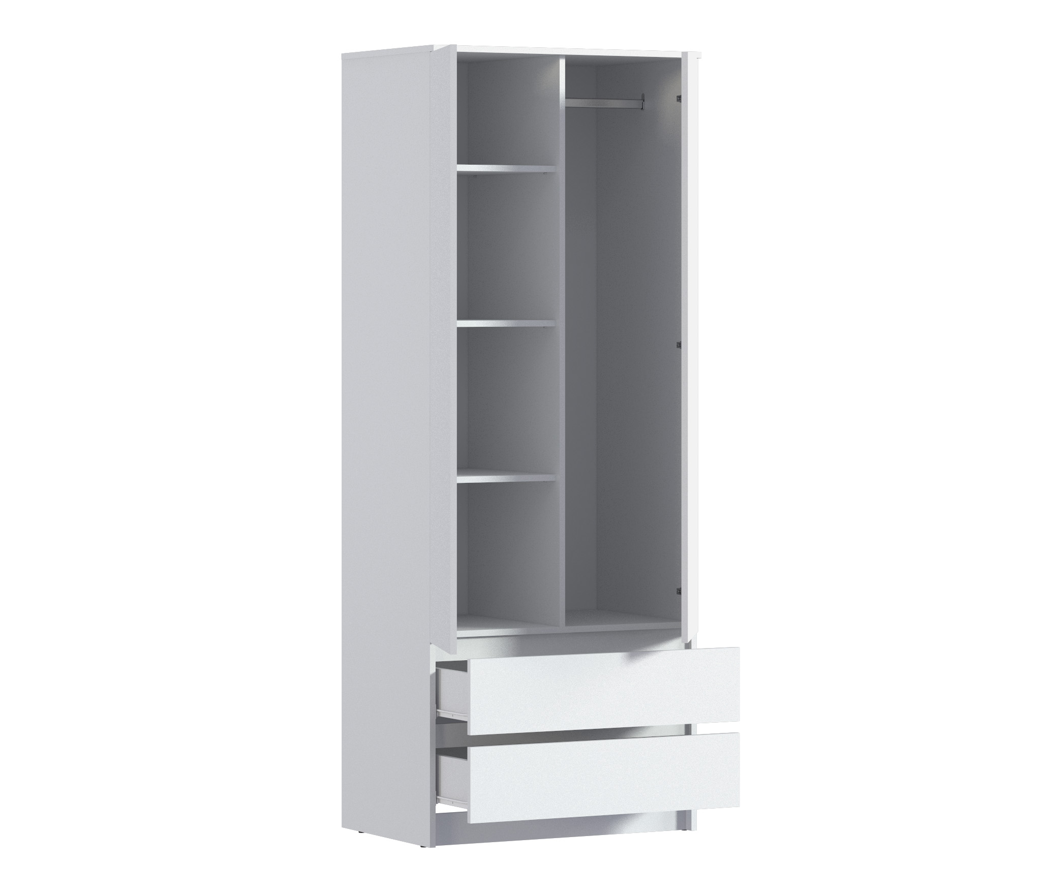 хороший шкаф, очень удобно, что есть и полки и перекладина и выдвижные ящики.