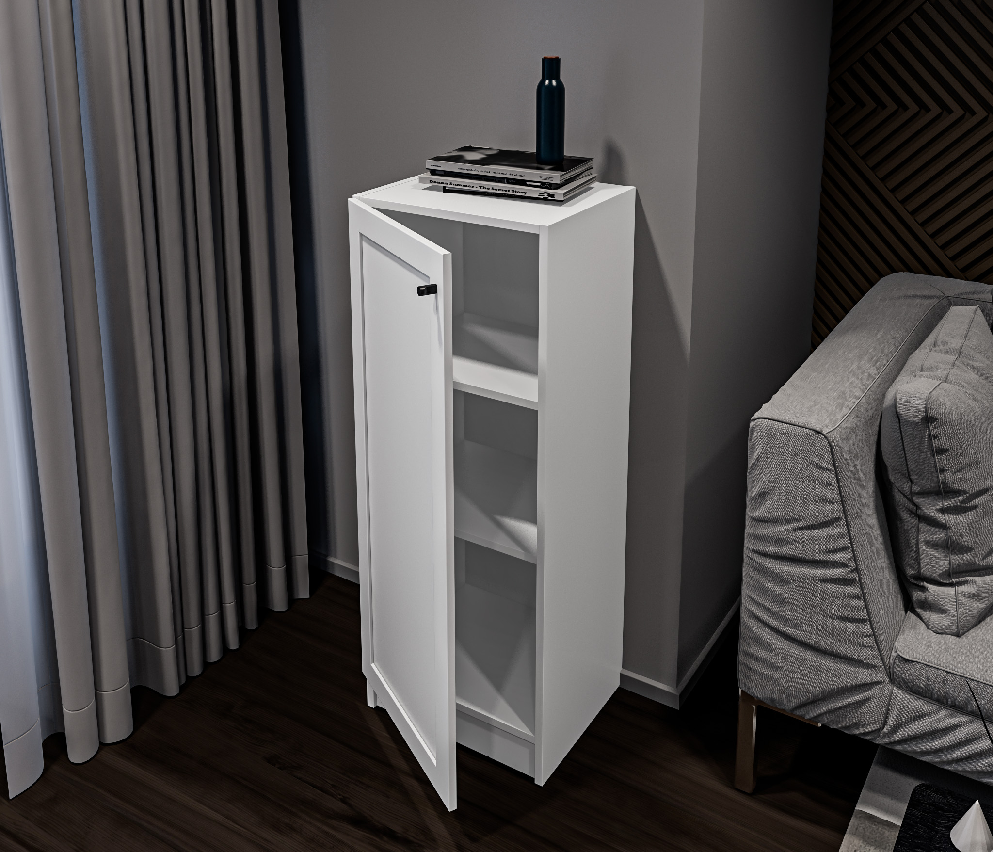МС Твин предоставляет возможность собрать шкаф или стеллаж по своему вкусу. Вы сами выбираете размеры, цвет ручек: белый или черный, наполнение: ящик или полки. Помимо этого, вы можете решить, оставить фасады глухими или выбрать стеклянные, чтобы добавить прозрачности и легкости в ваш интерьер. Создайте шкаф-стеллаж, который идеально подходит для ваших потребностей и вписывается в ваш стиль.