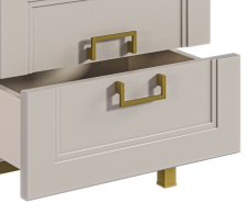 Золотистые ручки и ножки коллекции "Ассоль" добавляют неповторимый шик и изысканность, завершая образ тонким и стильным блеском. Эти акценты создают атмосферу роскоши и утонченности. Они играют роль визуального украшения, дополняя общий вид мебели и придавая ей особый шарм и элегантность.